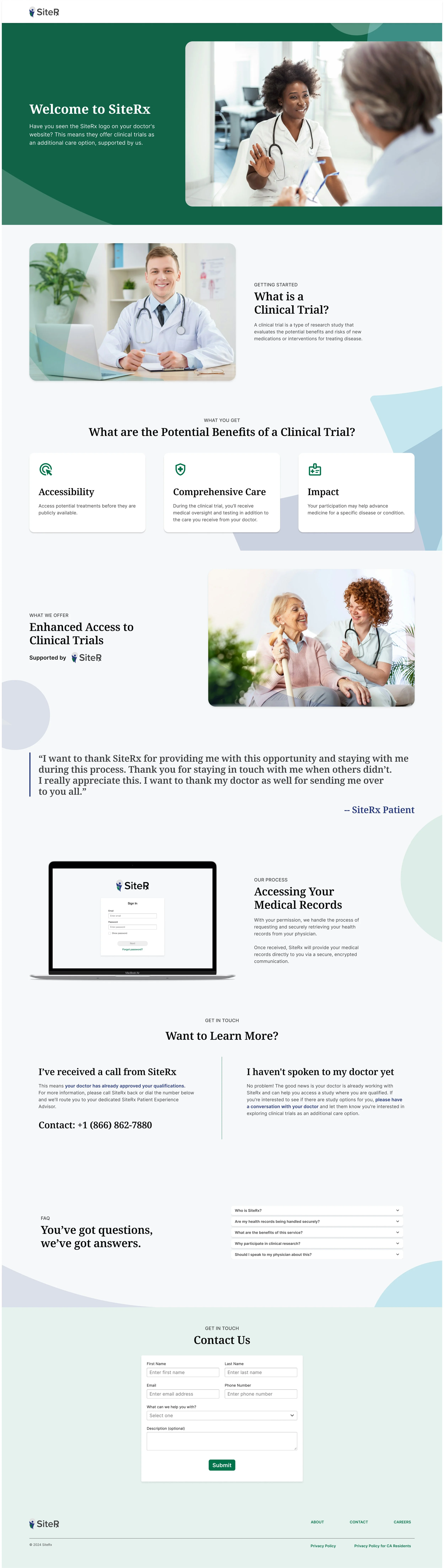 The original website was bare, visually disorganized, and inefficient at communicating the value of SiteRx. A clear brand identity was missing, leading to customer confusion and lower conversion success.